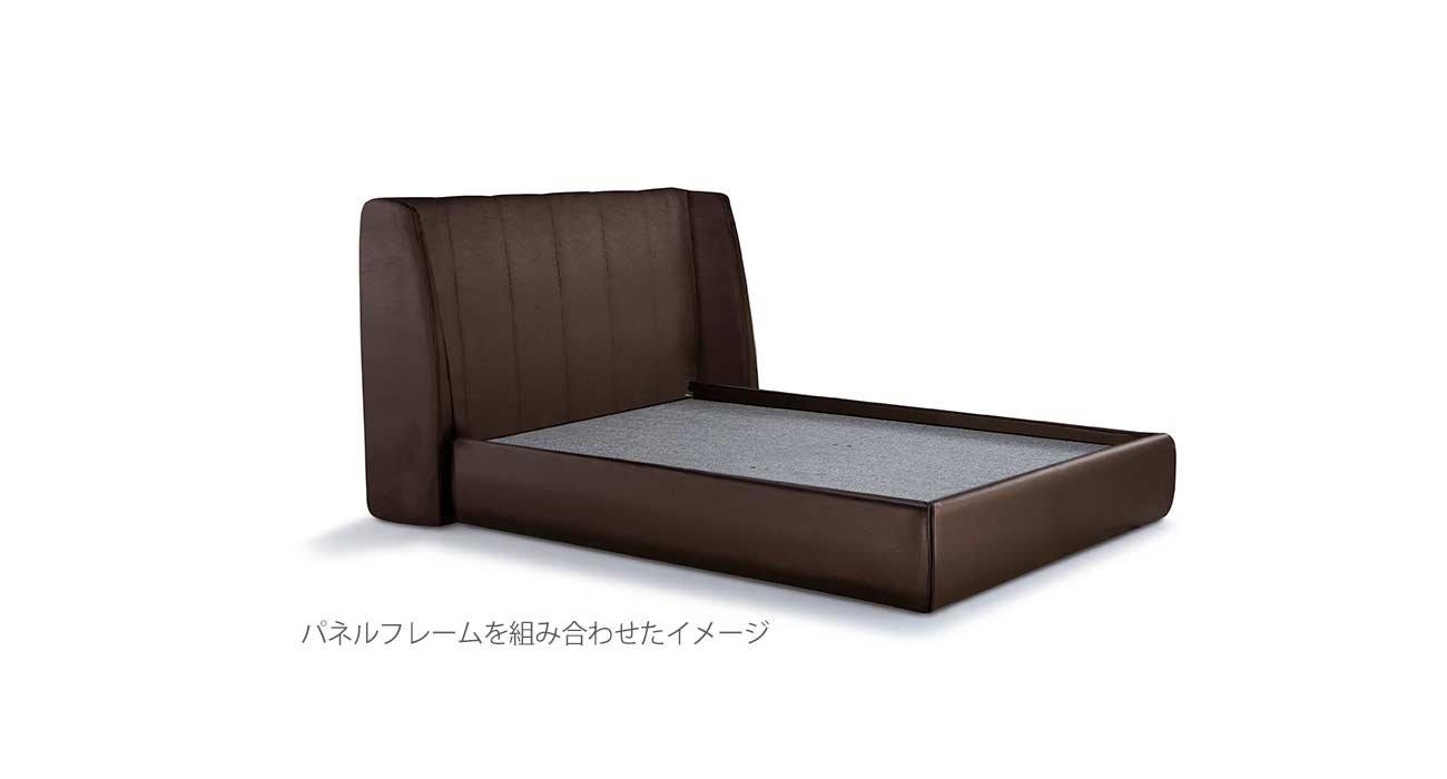 包み込まれるようなヘッドボード両サイドのデザインが特徴的なベッドフレーム。